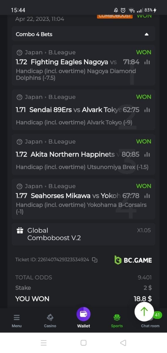 4. https://bc.game/sports?bt-path=%2F%3FbtBookingCode%3D86829B5 Ticket id: 2259559766428889097 https://bc.game/sports?bt-path=%2F%3FbtBookingCode%3DF82DB8F Ticket id: 2259232487010079094 https://bc.game/sports?bt-path=%2F%3FbtBookingCode%3DF7D146A Ticket id: 2257582733477949707
