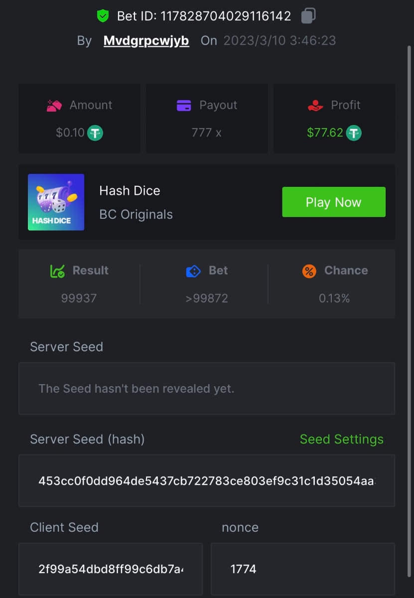 $1,500 Exclusive Weekend Hash Dice Prestige Challenge #76