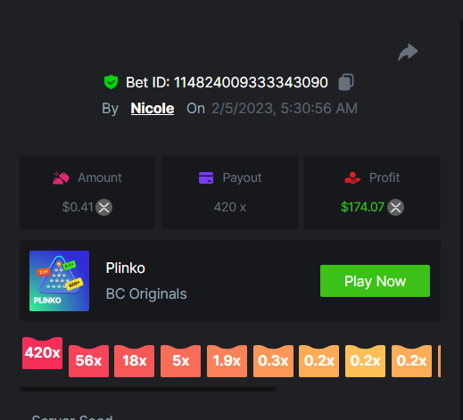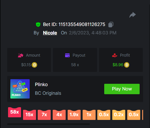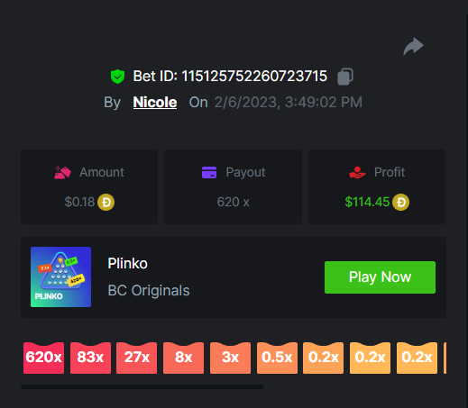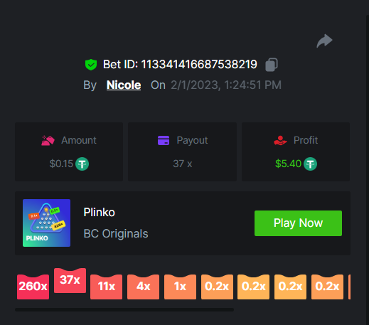 6. Multiplier : x29 Bet Link : https://bc.game/#/sd/112JDP36FXOS9F Screenshot : Multiplier : x13 Bet Link : https://bc.game/#/sd/112JE4FCNDEEQB Screenshot : Multiplier : x43 Bet Link : https://bc.game/#/sd/112JEE21HXIRRN Screenshot : Multiplier : x76 Bet Link : https://bc.game/#/sd/112JFHHH2ATZBN Screenshot : Multiplier : x22 Bet Link : https://bc.game/#/sd/112JFR1L18K1SJ Screenshot : Multiplier : x120 Bet Link : https://bc.game/#/sd/112JGA0S53SAAB Screenshot : Multiplier : x420 ( Bountty ) Bet Link : https://bc.game/#/sd/112U74863DAS5V Screenshot : Multiplier : x37 Bet Link : https://bc.game/#/sd/112L3NWMS008B7 Screenshot : Multiplier : x11 Bet Link : https://bc.game/#/sd/112L3TR7V9P2J7 Screenshot : Multiplier : x170 Bet Link : https://bc.game/#/sd/112XPNOPOPEWPF Screenshot : Multiplier : x260 Bet Link : https://bc.game/#/sd/112XQ1C9EVJJ83 Screenshot : Multiplier : x620 ( Bounty ) Bet Link : https://bc.game/#/sd/112XQM9K20642B Screenshot : Multiplier : x33 Bet Link : https://bc.game/#/sd/112XTK5C9MGRO3 Screenshot : Multiplier : x58 Bet Link : https://bc.game/#/sd/112XU9VHRPNBBN Screenshot :