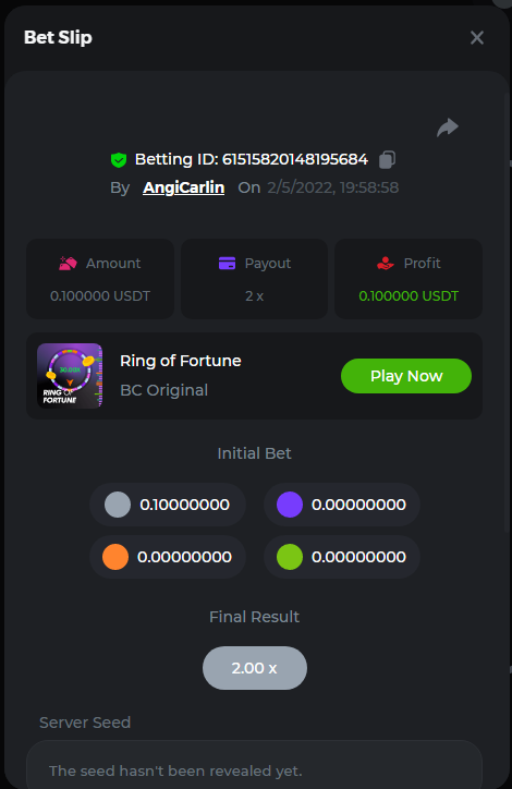 Los participantes deberán ganar cuatro apuestas en los siguientes colores: gris , naranja , morado y verde (en el juego Ring of Fortune interno ). Los colores deben seleccionarse individualmente, el primero apostar por Gris, el segundo por Naranja, y así sucesivamente.