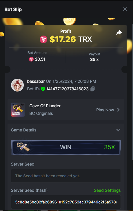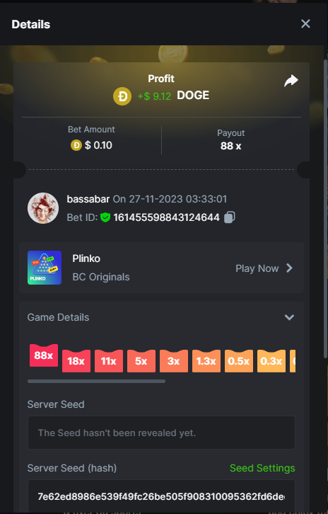 17. @BCGame_Maxim I assume the Game ID has to be consecutive too, otherwise you need to check if there was't any losing bets in between? :