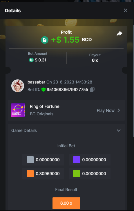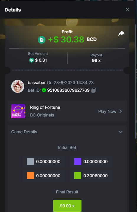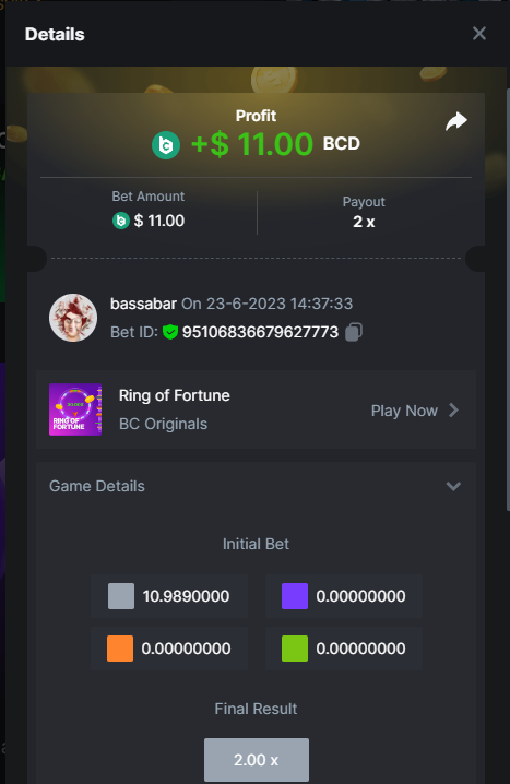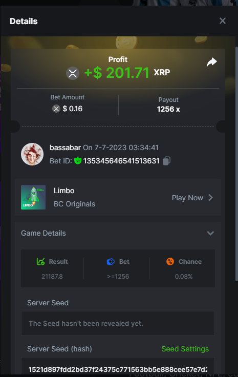 Total points: 13/21 5.10x https://bc.game/#/sd/118J46M4RS06XF 8x https://bc.game/#/sd/118J56MQ527CPF 11x https://bc.game/#/sd/118J57SIF67C43 17x https://bc.game/#/sd/118JKPN1K4FXG3 26x https://bc.game/#/sd/118JJVT0EGE237 30x https://bc.game/#/sd/118JKXNCY2FJF7 56x https://bc.game/#/sd/118J5GO4DS0OWJ 63x https://bc.game/#/sd/118OZOAU4KPT03 81.5x https://bc.game/#/sd/118J5KKFL285XV 100x https://bc.game/#/sd/118P08ZVQT5PN7 180x https://bc.game/#/sd/118P0PMTC3LE6R 250x 270x https://bc.game/#/sd/118P0YMN19M68J 350x 450x 500x https://bc.game/#/sd/118JMHBD6HSL5F 600x 710x 800x 900x 1000x Good luck to all pariticpants. I won't depo a penny here anymore, you won't have to be concerned I get more points then this/up my basebets anymore The reason is bc.game only cut/fully take away our perks and the Limbo challenge from which a participant got disqualified, but prizes were not corrected afterwards. With this combination they crossed a line from my point of view. Have fun and maybe I'll see you guys on other platforms, wish you all the best, best regards, Bassabar