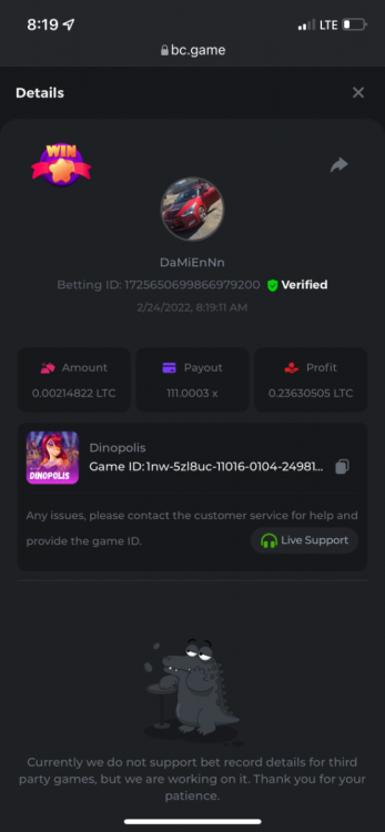 5. https://bc.game/sd/?sd=10H6B2VPA8NCB7 24.0304x $0.25 bet https://bc.game/sd/?sd=10H7GPCBDWKNWZ 100x $0.10 bet https://bc.game/sd/?sd=10H7HZSBB3BDW3 25.4x $1.00 bet