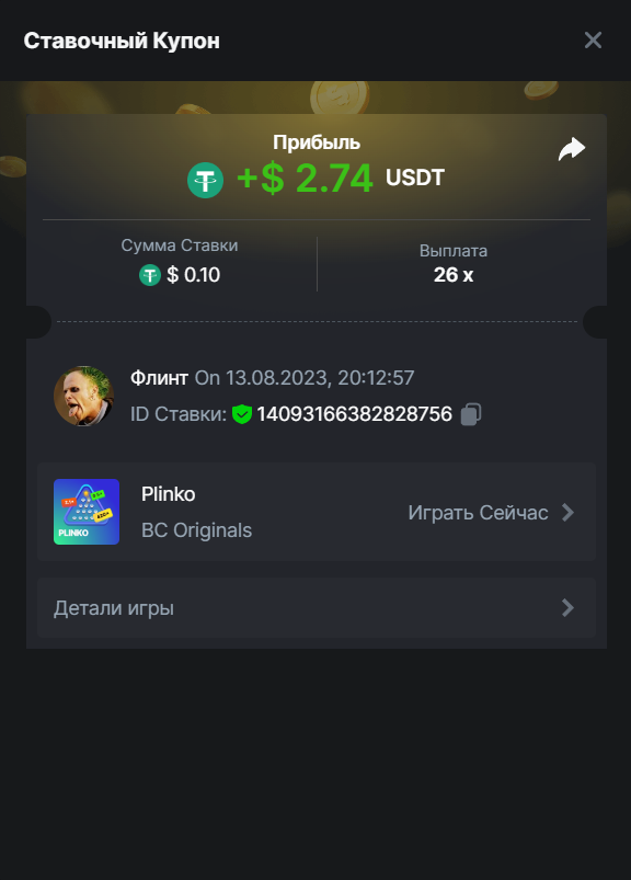 Флинт replied to BCGame_Maxim's topic in VIP Challenges