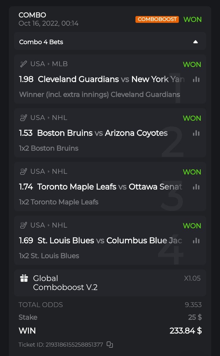 The most recent parlay i won.