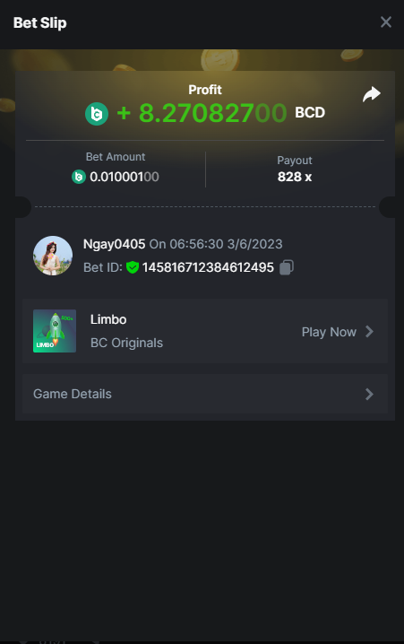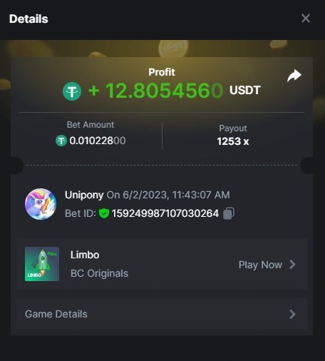 Maksypro Posted June 2, 2023 Share Posted June 2, 2023 Read Carefully Before Start To Hunt Daily Challenges #254 LIMBO Hunt : Win the highest multiplier Min Multiplier requirement 100x Min Level 4 ๏ธDuration Starting : Now End time : 23.59 UTC Time How to Join? Make screenshot + paste your bet link + UID or Profile link Any coin, with min bet 0.01 USD is allowed (jb/bb/bcl not allowed) Reward Prizes 1st Place.....$7 BCD 2nd Place.....$5 BCD 3rd Place.....$4 BCD 4th Place.....$3 BCD 5th Place.....$2 BCD ๐ต Winners will be announcing next day after Roll Point! 2 Link to comment Share on other sites More sharing options...