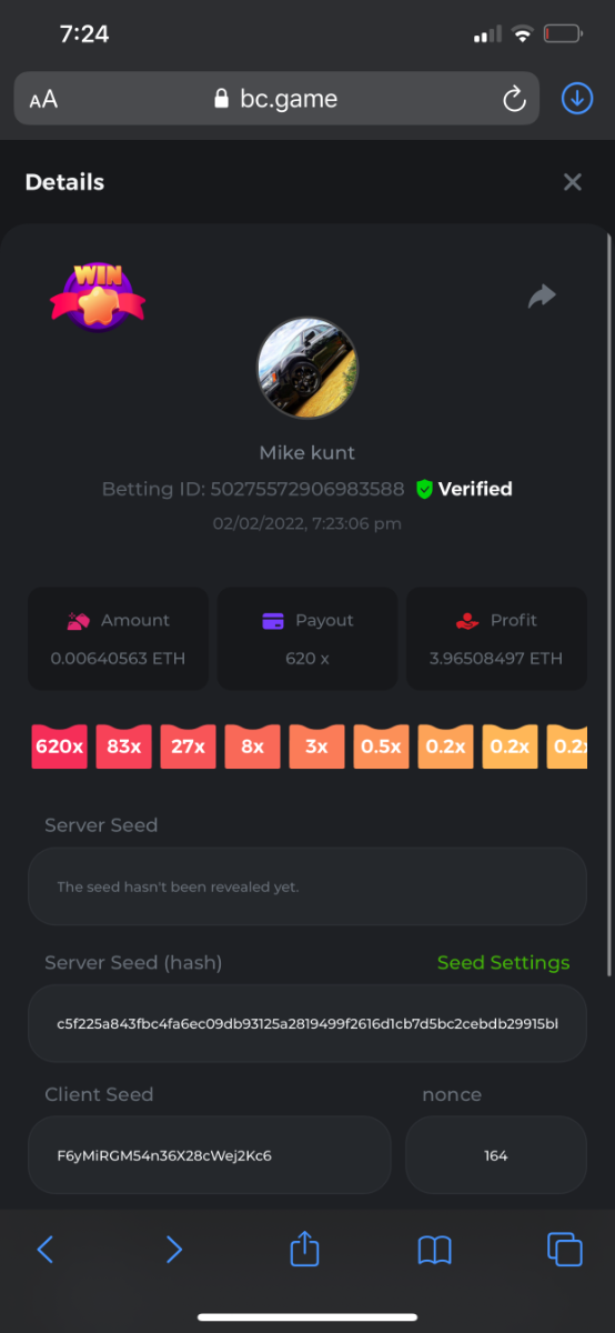 That is definately my most memorable moment from BC.game.